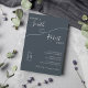 Vi presenterar vår moderna inbjudan till Löv Typography Wedding, en sammanslagning av elegans och contemporary stil. Med sin fängslande Mörk Dusty Blue-nyans och minimalistisk design anger den perfektens tonläge för din speciella dag. Den här inbjudan är perfekt anpassad till hjärtmotiv och elegant typografi och lyser sofistikering. Det är en inbjudan att lämna ett varaktigt intryck på dina gäster. Det är en inbjudan som återspeglar din unika kärlek-historia. Bygga upp det moderna romantik med vår moderna inbjudan till bröllopsbröllop i Löv.