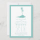 En enkel, modern bröllopsinbjudan med en teal illustration av en ö med två handflatan träd. Gräns, anpassningsbar och motsatt sida är också teal.