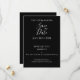 Det här är ett enkelt, modernt, icke-fotot bröllop spara datum-inbjudningskort. Den är i klassiskt svartvitt och har elegantens skripttypografi. På framsidan står det "Spara datumet", med utrymme för namn och din bröllop-dejt, under det står: "Vi är Gifta sig! Och vi hade kärlek för att du skulle fira med oss!" tillsammans med din plats och plats för bröllop för mer information. På baksidan står det också "Spara datumet", tillsammans med namn och bröllop datum. Den här snyggten är en perfekt för att informera dina vänner och familj om ditt bröllop-datum innan de skickar sin formella bröllopsinbjudan till dem. Om du vill anpassa dig skriver du bara in datum och plats i namn, bröllop tillsammans med all annan information i textrutan för att anpassa den. Här kan du också ändra resten av texten om du vill. Om du vill ändra färg eller teckensnitt checkar du ut verktyg för designredigering. Om du behöver hjälp med att anpassa dig eller om du behöver hjälp med anpassad design kontaktar du mig via zazzle-chatta eller e-post: ursuladawnmoon@gmail.com