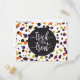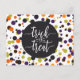 Ha en Spooktaculär Halloween med Personlig Postcard Inbjudan-Bus eller godis Cute Halloween-design med Orange, Grönt, Lila och Black Polka dots. Med roligt Modern Push Font & Hand plockade Dodles - Happy halloween!