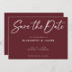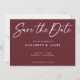 Modern maronbakgrund och ett vitt handskrivet inbjudningskort för stil bröllop spara datum. Den här designen har ett stort calligraphy stil-teckensnitt som du kan ändra färg. Du kan också anpassa all information och färg i den här Spara datumdesignen.