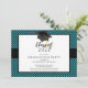 Starta din studentfest-händelse från höger med vårt moderna svarta skyddshölje för student med en guld-tassel-klass på 2021-studentfesters inbjudan. Utformningen har en klassisk svart studentmössa som är inställd på en svart och turkos blå rand mönster med trendigets svarta accentband. Perfekt 2021 studenten inbjudan till högskoleexamen i studenten eller högskoleexamen. Fyll bara i din information så kommer ni alla att gå. Besök vår butik för en stor mängd trendig & snyggt studentkort & studenten annonsering i ett stort antal skolor i färg!