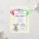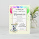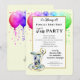 Glad, modern inbjudan till teparty för att fira att man är skuldfri (eller för brännande av inteckning, husvärmning, födelsedag, vad som helst!). Inbjudan har ballonger, akvarell-tecup, script-text och ballonger och slutmeddelande på baksidan.