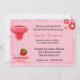 Jordgubbsblommor i Inbjudningskort för möhippan med rosa blombakgrund. Anpassa med duschinfo.delightfuldoodles.