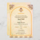 Höj kärnan i din union med vår indiska inbjudan till hindubröllop med en gudomlig Ganesha-logotyp. Den här inbjudan är uppgjord med elegans och förenar på ett vackert sätt tradition och stil. Emblemet i helig Ganesha symboliserar en lovande början, som garanterar välsignelser för er resa tillsammans. Inbjudan dina kära till i din unions glädje med denna unika designade och kulturella bröllopsinbjudan till rik. Förbered traditionen med en aning sofistikering - beställ dig idag och markera början på ditt vackra firande.