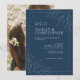 Modern Indigo Blue Foliage Outline Photo Bröllop Inbjudningar