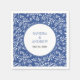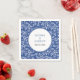 Modern indigo blue löv bröllop papper napkin. Bröllop formar visningen mönster av blå löv och texten i ett vitt, skalat ram med indigo kontur.
