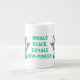 Inhale Peace, Exhale Skutt-Piness, lustigt, söt groda utövar meditation och funderar över vikten av att bara andas. Färgstark i grönt och rosa, på en Bone China mugg.