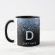 Modern inledande monogram för svart och blå glitte mugg