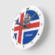 Wall Clock: Modern patriotiskt Island, Jackande av Arm och isländsk Flagga - kärlek mitt land, resor, helgdag, land-patrioter/sportfantaster