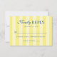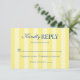 A modern yet timeless wedding rsvp card featuring light yellow and butter yellow stripes that evoke warmth and sophistication. The design is elevated with blue typography, striking a perfect balance between minimalist clarity and elegant Italian flair. The overall aesthetic whispers old money elegance—refined, understated, and effortlessly chic. The striped palette recalls sunlit Italian villas, while the vintage typography adds a touch of aristocratic charm. Together, these elements create an invitation that is minimalist yet luxurious, romantic yet dignified, and unmistakably Italian in spirit.