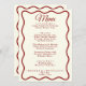 En färglös funky, modern, smart bröllop-middagsmeny. Chicen har en malldesign av boho vintage, mjölkaktig elfenbensbakgrund och djup röd typografi a. Perfekt och matchning med hela sviten.