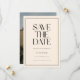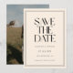 Modern Ivory Fetstil Bröllopsfoto Spara Datum. Ett modernt och elegant, beige/kräm och svart bröllop spara datum-kort, designat med stor, fet typografi och en tunn linje ramkant. Personifiera med ett favoritförlovningsfoto eller allmänt parfoto på baksidan och lägg till era namn, kommande bröllopsdatum och bröllopsplats på framsidan, inklusive "formell inbjudan följer"-text, om önskas.