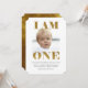 Modern guld-vattenfärgstryck "JAG ÄR EN" markerar fotot på din baby första födelsedagsinbjudan. I andra kombinationer av färg kan du enkelt lägga till party-information till den här första inbjudan.