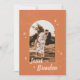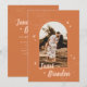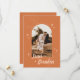 Denna eleganta boho-spara-datum-inbjudan har en enkel modern layout, handritade blomsterdekorationer och en vacker båge i mitten som du kan anpassa med ditt eget foto. Anpassa fler detaljer på baksidan av kortet.