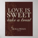 Lägg till en söt finish på ditt dessert- eller förmånbord med denna Moussebruna skylt med texten ”Kärlek är sött”. Designad med elegant modern typografi och subtila blomaccent i en varm jordton, ger denna skylt charm och sammanhållning till din fest. Perfekt för trattstationer, kakor eller godisbufféer, kompletterar den en naturlig, minimalistisk bröllopsstil vackert.