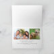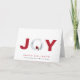 Det moderna naturinspirerade julklappningskortet som innehåller ord "JOY" i stor röd typografi med "O" som avbildas av en vattenfärgad illustration av snögiga gräs träd och en röd kardinal som genomträngs inuti. Du kan anpassa "Glad helg"-hälsningen med enkel röd typografi och ditt namn och år under. På insidan lägger du till två foton och ditt personlig-meddelande.