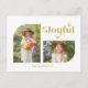 Simple, clean and modern typography-based holiday design featuring custom "Joyful" greeting in cool decorative font with unique half-arch template to accommodate two photos. Color of text graphic is customizable (gold was used in the preview).