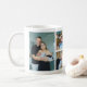 Den här hjärtvärmande julmuggen har en modern design med en touch av lekfull charm. Framsidan på muggen visar en förtjusande collage av familjefoton som framhäver den nyaste medlemmen i deras familj. Greetingsen "A Little Extra Cheer This Year" är skriven i en stilren, handskriven stil, vilket ger en touch av festlig glädje. Muggen fångar vackert magin i att välkomna en nyfödd baby till världen, vilket gör den till ett perfekt val för familjer som vill dela sina dyrbara ögonblick och sprida julglädje.