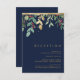 Denna moderna julgryn | Kort för mottagningskort är perfekt för ditt enkla vinterbröllop. Designad med geometrisk faux-folie av guld och minimalistisk botanisk vattenfärg med beröring av grönt eucalyptus och röd vinbär. Allt på en klassisk marinbakgrund. Inslag ge är det en modern elegant...och känna dig säker på att du kommer att slutföra ditt utseende! Du kan anpassa med egna foton eller behållor som det är. Se till att titta igenom resten av samlingen för att slutföra ditt bröllop-tema!