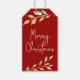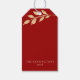Den moderna julen Guld Lämnar på Röda gifts Märkre. Perfekt för dina helgdag, gåvor och behandlingar! Elegant-typografi på en helgdag-röd bakgrund som avaktiveras av guld-folie stil vattenfärgsfärg löv. Designad för att komplettera vår Elegant Guld Löv julinsamling.