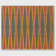 Denna papper har en modern utformning av diamanter och trianglar i efterrött och grönt i guld. Ser storslagen ut under träd.