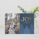 Detta moderna julkort är ett tänkvärt och visuellt tilltalande sätt att sprida glädje och fira julhelgen med din familj, vänner och nära och kära. Den ömtåliga blå gräs-träd är smakfullt placerad på framsidan och baksidan och tillför en aning vintermagi, och ord "Joy" är vackert utklädd med faux-guld typografi som utstrålar värme och glädje. Anpassa med egen familjefoto och egen text.