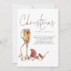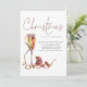 Modern julskript. Enkel elegans med ett champagneglas och kakor som gränsar till detaljerna, och huvudrubriken i ett handskript i stil. Anpassa enkelt resten av texten till dina egna detaljer.