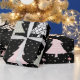 En tydlig modern flagga i julomslag som är papprare med ett övertryck av upprepande Julgranar i skuggor av rosa, grått och svart.