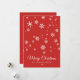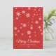 Snyggt och modernt julkort för helgdag. Kortet med God jul, ditt personliga anteckningsnummer och ett årsnummer i trendigets vita skript. Vit vacker övertäckning av snöflingor finns på kortets framsida - bakgrunden är röd. Anpassa det här kortet enkelt med ditt namn och ett årsnummer. Det är en underbar design för familj, par och ensamstående.