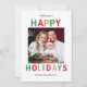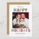 Enkel, stilren julkort med modern minimalistisk handskriven text och blodtypografi samt en enkel kritvit bakgrund, "God Jul". Fotot och texten kan enkelt anpassas för en design som är lika unik som din speciella familj! Bilden som visas är endast för illustrationssyfte och ska ersättas med ditt eget foto. Platshållarbilden visar en mamma och son som tillsammans packar in presenter vid julgranen i ett minimalistiskt modernt hem. #jul #julkort #modern #familj #guld