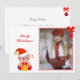 Söt julalf och flicka med presentkartong Julkort. Text och foto kan anpassas.