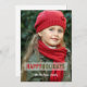 Modern julkort med röd och grön fet textöverlägg. ELKE CLARKE© Mångsidig design för att lägga till din bild, ditt namn och år i en retrotextstil, och skicka till familj och vänner under högtiden. Grön och vit randigt mönster på baksidan. Andra färger tillgängliga. "God Jul"