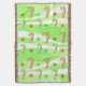 Kasta filten med min sativa och färgstarka polkagrisar på en återseende vågigt grönt och vit bakgrund.