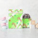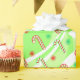 Vänsteromslag med min sativa och färgstarka polkagrisar på en återseende vågigt grönt och vit bakgrund.