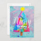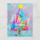 Färgfull och söt modern juldesign av modern vattenfärg julgran som målats av konstnären Sacha Grossel. Funkyns blå och rosa färgad träd på en faux rosa glitter är en fest och roligt för ett modernt jultema. Glam och glatt jul