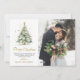Modern Elegant skript Julgran 2-fotojulkort. Detta fräcka, minimalistiska två Helgdagskort för fotopilar har en vattenfärg julgran med dekoration guld och konetti, en "God jul"-hälsning som är skriven i en fin, handskriven kalligrafiktext från svan i bollar och vitt. Den här festliga Anpassningsbarna Fotojulkort är ett underbart sätt att påminna de kära om att du tänker på dem den här vinterJulhelgen.