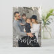 Den här platta dubblan i God jul har modern skriptcalligrafi och en Julgran fotokollage på baksidan. Infoga dina favoritfoton, lägg till en personlig beröring med ditt eget hjärtliga meddelande och anpassa det efter dina önskemål. Foton efter prostooleh / Freepik.