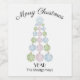 Den här vin-etiketten har tre runda, icke-traditionella, färg-julprydnader i pastellernas grönt, rosa och blått med vita stjärnor. Utsmyckningarna staplas och delas upp storlekt för att bilda en Julgran-form. Anpassa texten till fält eller ta bort den helt.