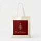 Modern rött till påsen, med en vit och guld Julgran och manustypografi. Med skrivstil för vita anpassaden kan du lägga till egen information. Ett tillbehör till roligten för din helgdag att handla.