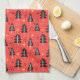 Modern Julgran Red Orange Färg Mönster Kökshandduk