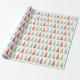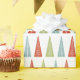 Skär upp i stil med den här presentfigursättningen. Denna pappra omslutning har en prägel över hela mönster på eleganta, moderna illustrationer av Julgranar i stil på ljust grönt, ljusblå och röda med vita accenter mot vit bakgrund.