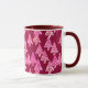 Mugg i Mid Century Modern, blomman som utarmats, Julgranar i en silkesfärgad gradient - träd i en gradient av pastellers rosa och grädde, accentuerad med burgundi, på en djup burgundisk vin-bakgrund
