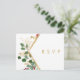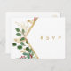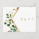 Denna moderna julgrönska | vita bröllop RSVP vykort är perfekt för ditt enkla boho vinterbröllop. Designad med geometrisk falsk guldmetallfolie och minimalistisk botanisk akvarell med inslag av grön eukalyptus och röd vinterbär. Allt på en klassisk vit bakgrund. Dessa element ger det en modern men ändå elegant känsla som säkert fullbordar den look du eftersträvar! Du kan anpassa med dina egna foton eller behålla det som det är. Se till att titta igenom resten av kollektionen för att fullborda din bröllopstema!