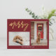 Modern God Jul Hund Foto Julkort. Detta vackra platta kort har ett modernt och elegant manus, med en gyllene akvarellstänk och en solid burgunder vin färgad bakgrund. Byt mallfoto för ditt eget. Vänligen kontakta Antique Chandelier om du vill göra några ändringar i denna julkort design.