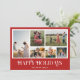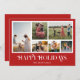 Glada helger! Skicka dina varma önskningar till vänner och familj denna jul med ett anpassningsbart fotokollage julkort. Det har modern elegant typografi med röd bakgrund. Anpassa genom att lägga till dina egna foton, namn, år och andra detaljer. Detta minimalistiska jullkort finns tillgängligt i andra färger och kartong.