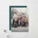Detta moderna julkort har ett stort foto och en enkel valvformad överlagring. Den falska guldskinnande valvöverlagringen ligger över det vertikala fullständiga fotot. Anpassa med ditt favoritfamiljefoto, en anpassad julhälsning och era namn och årtal längst ner. På baksidan av kortet hittar du plats för fler foton eller ett anpassat meddelande om så önskas. Den mörka skogsgröna bakgrundsfärgen på baksidan kan ändras.