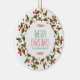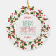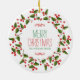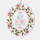 Elegantens moderna jultomatprydnadsdesign. Grönt och rött julkrans med vit bakgrund. Anpassningsbar.