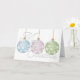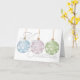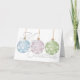 Julkortet innehåller tre icke-traditionella julprydnader i färg i pastellform, grönt, rosa och blått med vita stjärnor över en vit bakgrund på omslaget och som medförs inuti. Anpassa insiderinformationen i fälten för mallen.