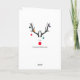 En rolig och söt abstrakt bild av ett renhuvud med rött näsa. Med julprydnader, baublar hänger från småborna. Vit bakgrund, Färg: vit, röd, grått, blå, grönt. texten: ho-ho Inside: Templates for your helgdag and family namn. Matchande frimärke är tillgängligt.